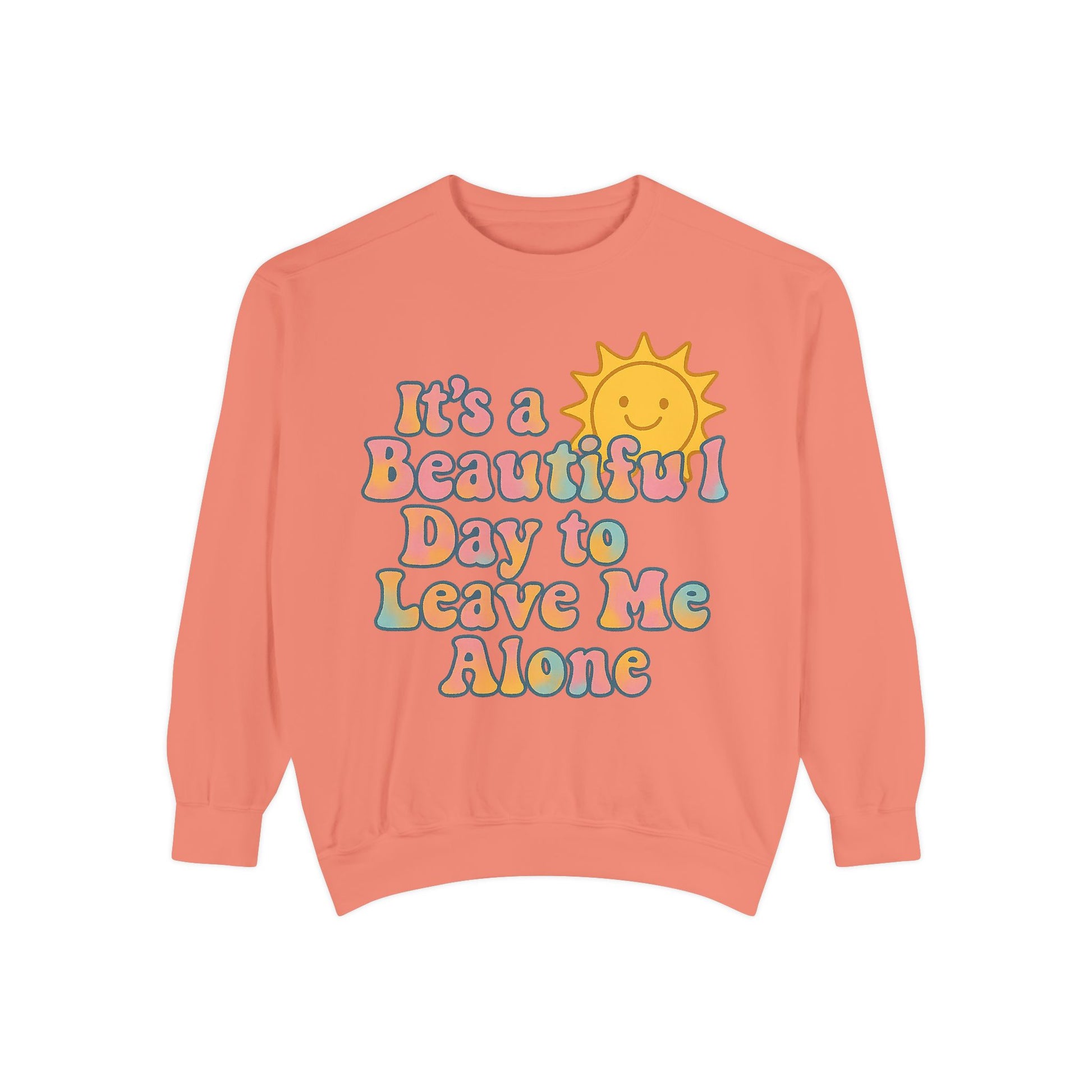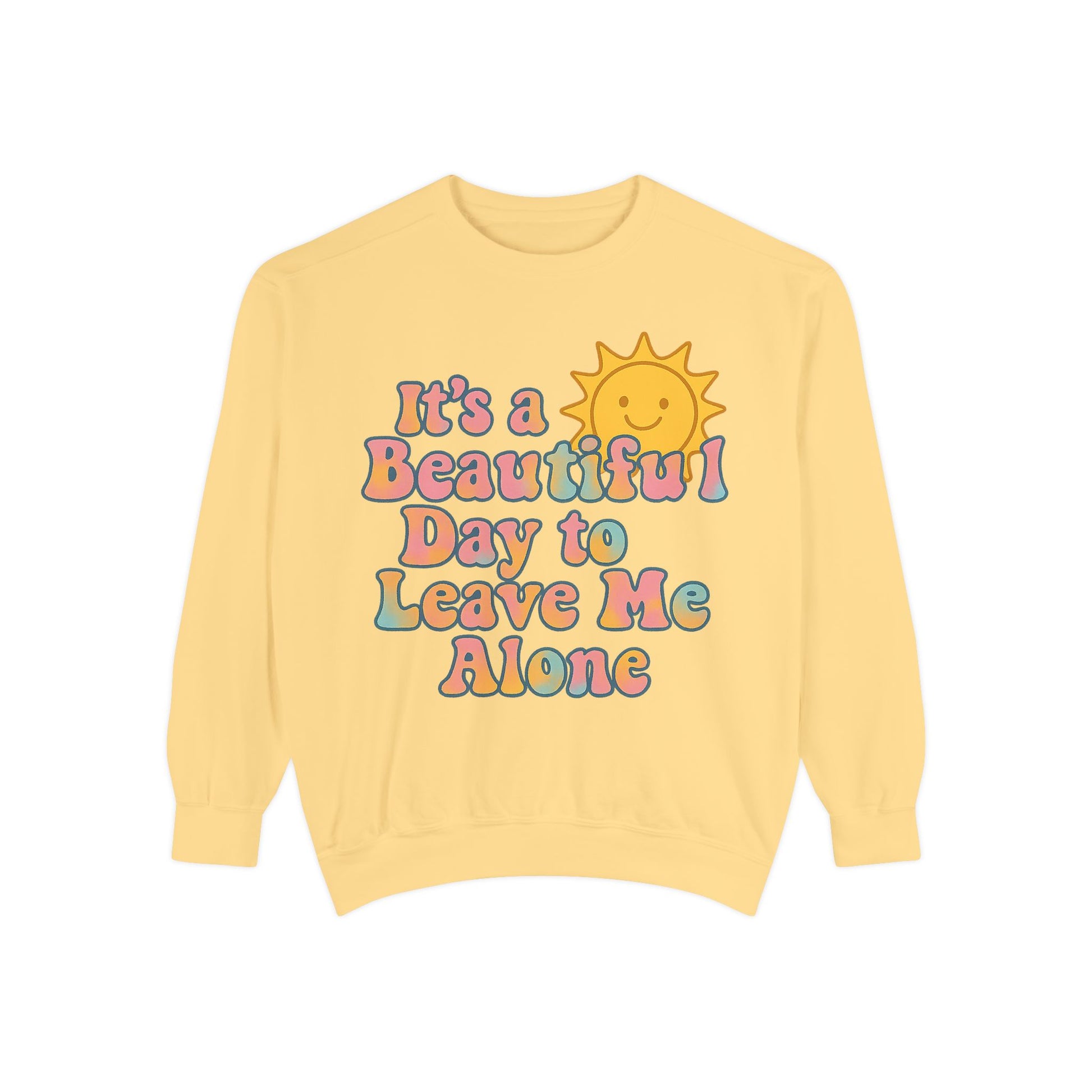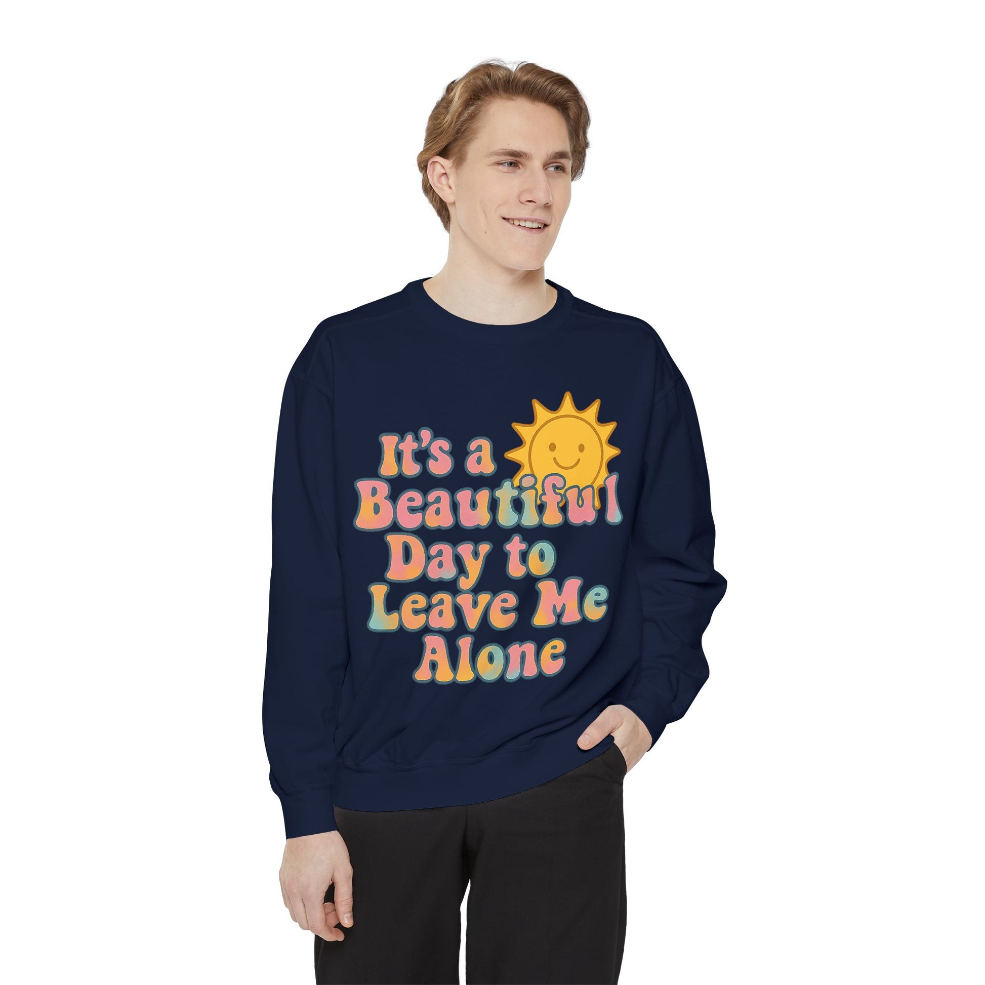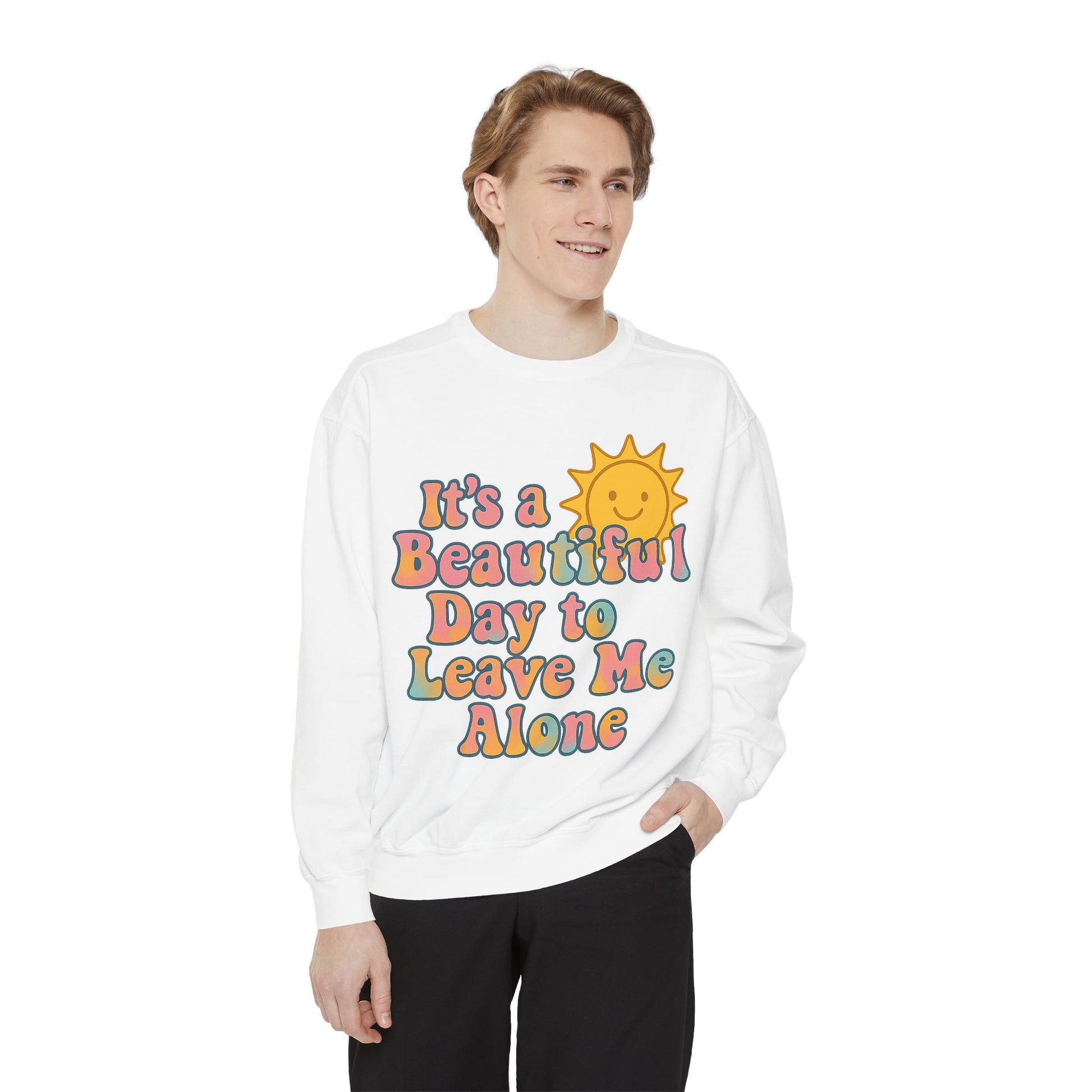 Unisex Garment-Dyed Sweatshirt | It's a Beautiful Day to Leave Me Alone - Cozy Gift, Relaxation Wear, Casual Outing, Sunshine Vibes