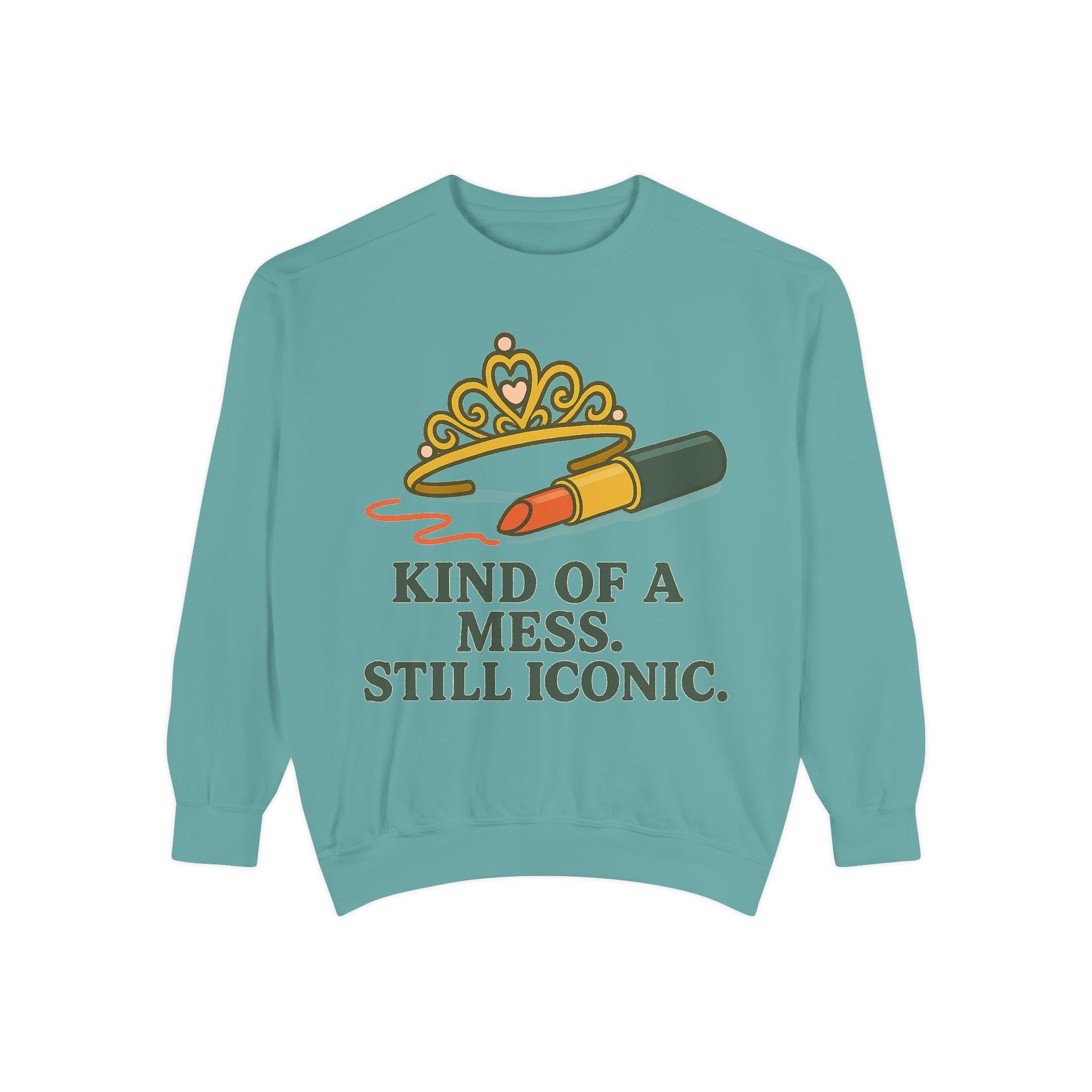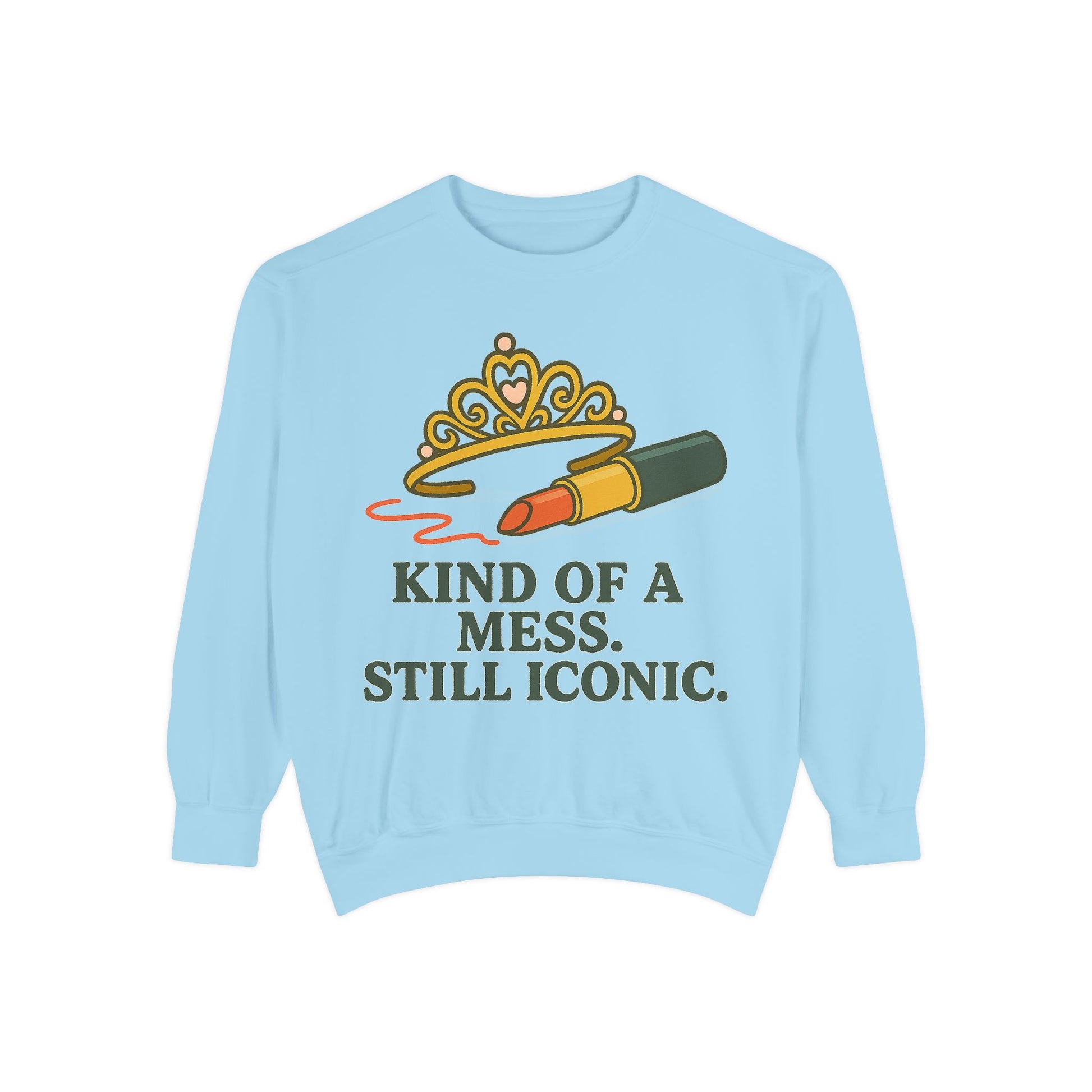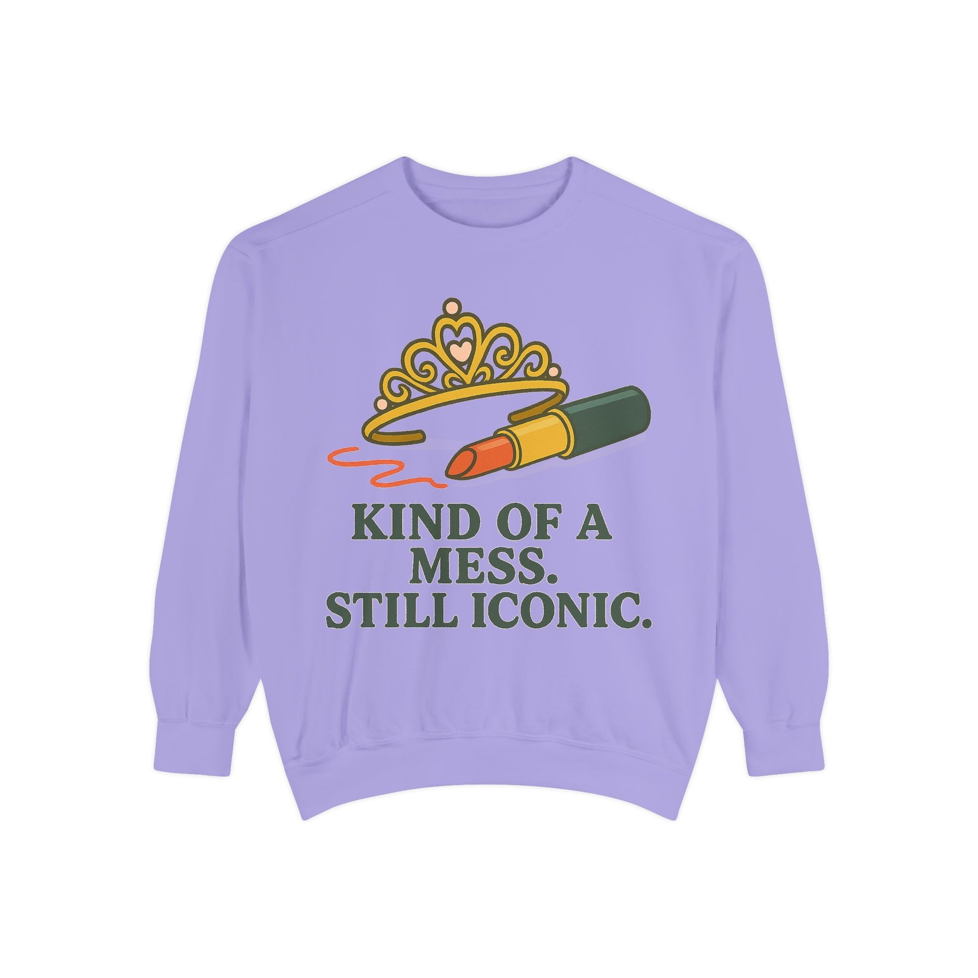Unisex Garment-Dyed Sweatshirt | Kind of a Mess, Still Iconic - Casual Wear, Trendy Apparel, Perfect Gift, Messy Style, Everyday Comfort