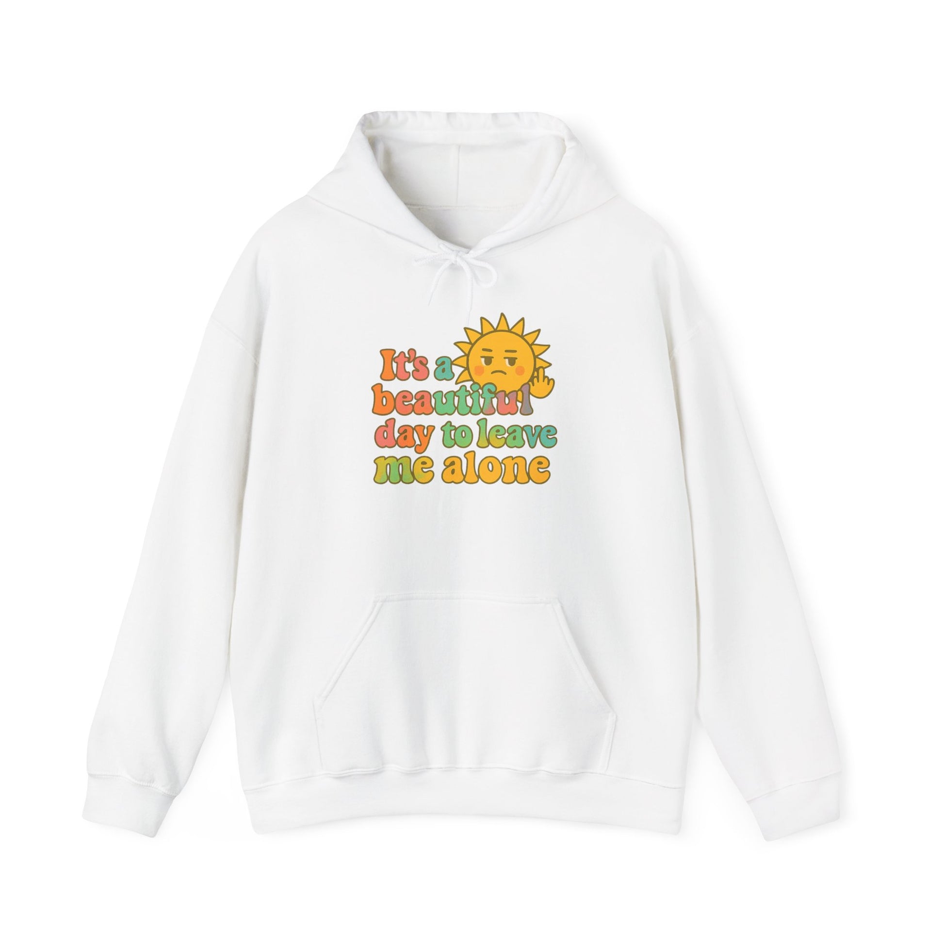 Embrace comfort and style with this Unisex Heavy Blend™ Hooded Sweatshirt. Featuring a whimsical design that declares, "It's a beautiful day to leave me alone," this hoodie is perfect for anyone who appreciates a cozy vibe while enjoying their personal space. Its relaxed fit and soft fabric make it an excellent choice for casual outings, lounging at home, or running errands. With its spacious kangaroo pockets, you'll find warmth and practicality all in one. Ideal for gifts or self-indulgence, this sweatshirt is perfect for casual Fridays, lazy weekends, or even cozy holiday gatherings. Made ethically and sustainably, it's a perfect choice for those who value both comfort and conscious consumerism.